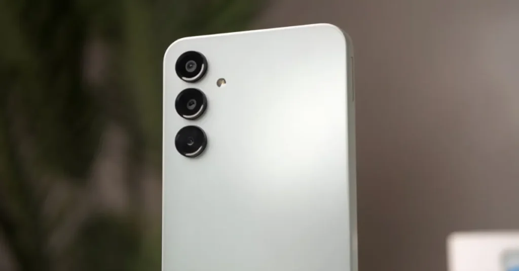 In terms of design, the phone features Samsung’s minimalistic style with a matte polycarbonate back. It measures 8.4mm thick, weighs 190g, and is available in Graphite Black, Mint Green, and Lavender Blue. The device feels lightweight yet durable, appealing to younger buyers.
